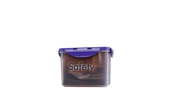 Rectangular food storage containers with colored covers and capacity of 1 L.