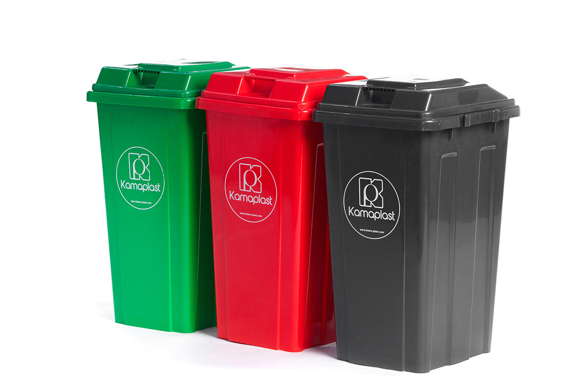 Sorting dustbins in 3 colors for waste management solutions of 45L capacity.